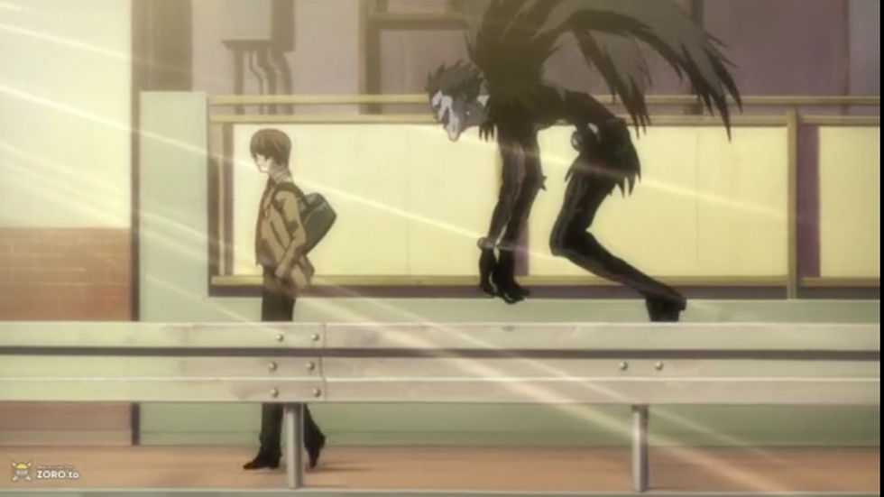 Later, Ryuk finds out that a mysterious man has been tailing Light. He informs Light, and Light quickly secures his position trying to find the identity of the ‘spy’.